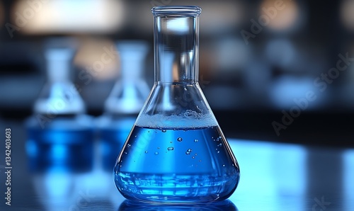 Laboratory Beaker Filled with Blue Liquid for Science and Chemistry