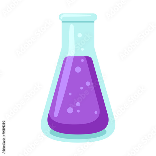 Laboratory beaker, test tube or flask. Science and medicine. Cartoon flat illustration