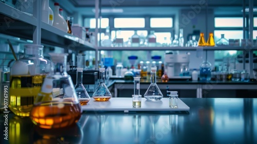 Laboratory Experiment With Chemicals and Glassware.