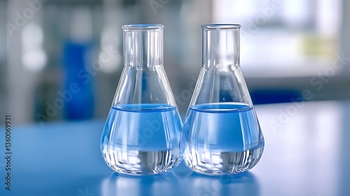 laboratory glassware on blue background