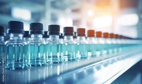 Laboratory glassware with liquid in chemical laboratory.