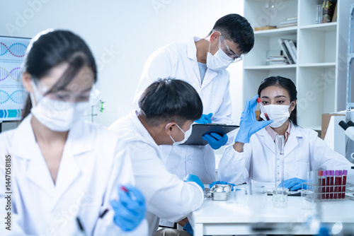 Laboratory research with blood sample in test tube for medical analysis related to health and medicine aiming to study results and improve clinical understanding