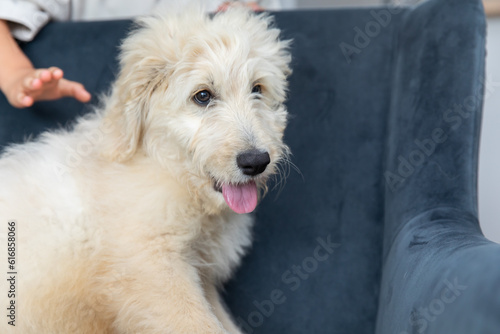 puppy, dog, pet, animal, couch, dog, sweet, mammal, pretty, seated, room, indoor, copy space, breeder