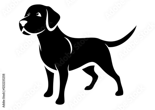dog, labrador, icon, sticker, isolated, pictogram, symbol, emblem, logotype, vector, illustration, silhouette, pet, animal, standing, black, breed, playful, expression, character, graphic, design, loyal, friendly, eye, nose, ear, outline, charme, personality, happy, presence, canino, affection, adorable, robust, drawing, noble, unique, artistic, modern, strong, active, companion, cute, purebred