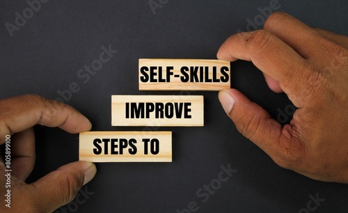 ladder-shaped stick with the words steps to improve self-skills. the concept of upgrading skills