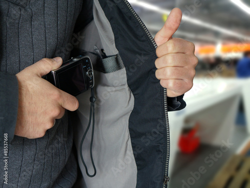shoplifting, thief, digital camera, robbery, stick in, department store, swipe, crime, criminal, steal, behaviour