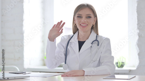 Lady Doctor Talking on Video Call While sitting in Clinic
