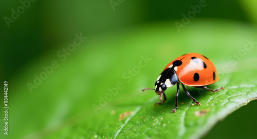 ladybug on a green leaf macro