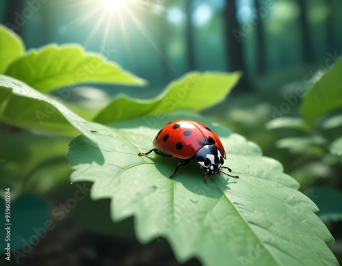 Ladybug on a Leaf Spring Summer Garden Red Bug Spotted Shell