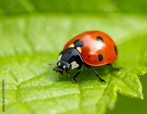 Ladybug on a vibrant green leaf (1)