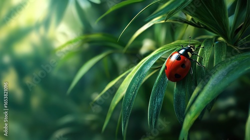 Ladybug on lush leaves in a vibrant garden setting