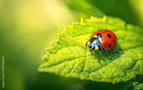 Ladybug Resting On A Bright Green Leaf In Spring