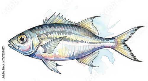 Ladyfish watercolor, Watercolor style digital painting for graphic design decoration, gifts or print design, animals, fish in water, river, sea, lake life