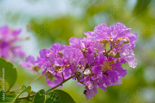 Lagerstroemia loudonii flower or Lagerstroemia floribunda. Beautiful blooming pink-purplish-white blooming flowers on the against the bright morning