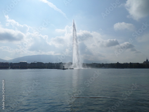 boat, sea, water, nautical, sailboat, sail, sloop, heaven, ocean, travel, blue, summer, ship, lake, fountain, geneva, wind, landscape, coast, horizon, sun, nature, white, sport, yachting, calm, serenity, beauty, view, wealth, blue skies, relax, city