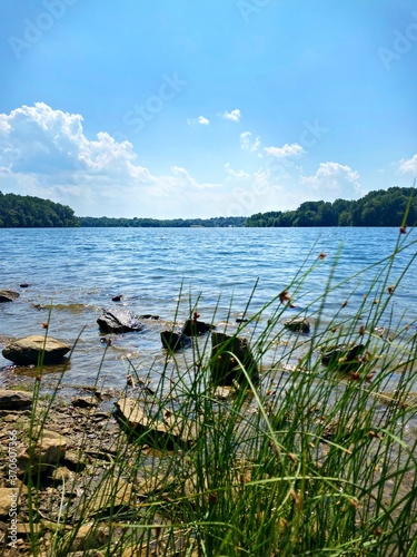 water, lake, sky, landscape, nature, blue, river, sea, cloud, summer, grass, cloud, coast, green, horizon, tree, sunset, beach, duck pond, mountain, panorama, shore