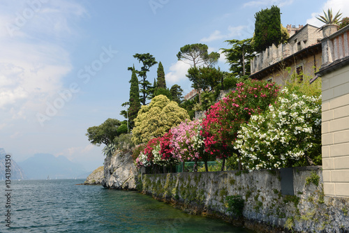 garda, lake, waterfront, italy, view, flower, tree, waterside, sunny, water, summer, coast, nobody, outside, house, idylli, green, mediterranean, nature, blue, sky, travel, destination, vacation, landscape, relax, italian