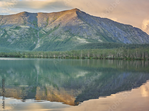 beautiful, cloud, forest, lake, landscape, mountain, north, oar, panorama, river, russia, sky, summer, sun, sunset, taiga, tree, tundra
