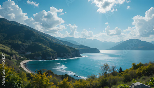 lake, water, landscape, sky, sea, mountain, nature, beach, mountain, summer, view, coast, cloud, cloud, blue, island, panorama