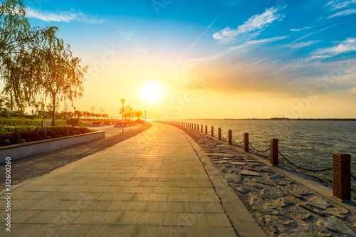 sky, sunset, cloud, square, floor, ground, road, lake, water, park, nature, landscape, footpath, brick, street, nobody, horizon, space, modern, skyline, texture, city, empty, wave, cloudscape, beautiful, background, dramatic, river, colourful, season, tour tourism, vibrant, summer, travel, blue, vacation, sun, beauty, sunlight, dusk, sunrise, colours, orange, light, morning, yellow, lakeshore, path