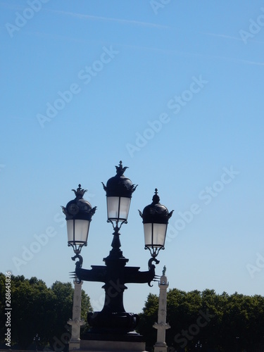 Lampadaire + 2 tour aux loin du Monument aux Girondins a Bordeaux.