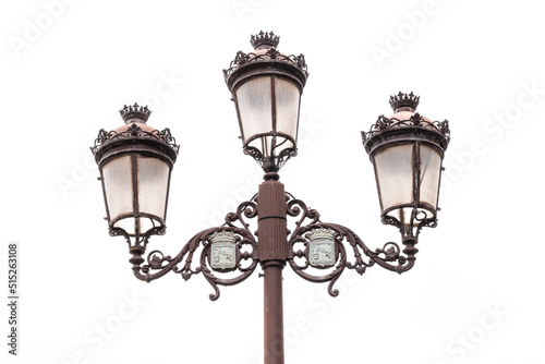 Lámpara antigua, de calle antigua con fondo blanco