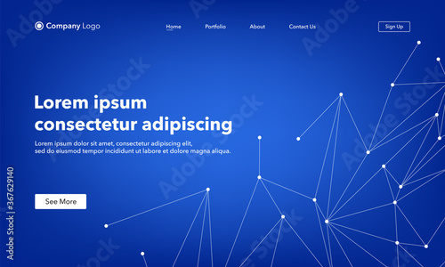 Landing Page abstract background website. Connection structure. Blue. Template for websites, or apps. Low poly, Molecule And Communication. Modern design. Abstract vector style.