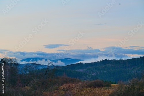 mountain, sky, landscape, nature, mountain, cloud, fog, cloud, forest, mist, view, hill, sun, vale, tree, dawn, peak, panorama