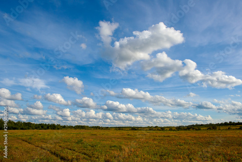 Landscape fields and huge sky. Beautiful nature of arable Europe.