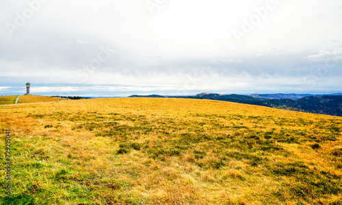 Landscape in autumn at Feldberg in the Black Forest. Feldbergsteig hiking trail. Nature in the Breisgau-Hochschwarzwald district in Baden-Württemberg.