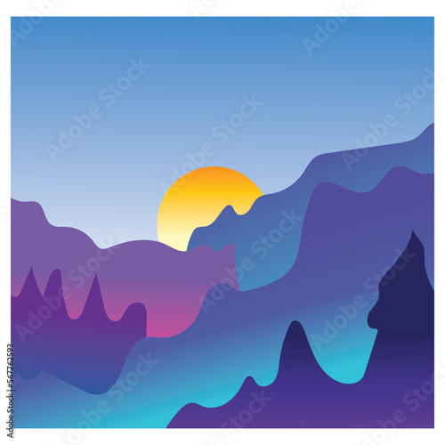 landscape morning sun mountain view background vector coloring illustration design