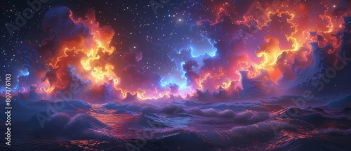 Landscape of cosmic clouds and stars with vibrant colors representing the night sky background