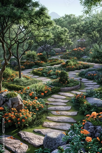japanese garden, garden, landscape, nature, architecture, plant, flower, tree, rock, path, pavilion, hill, river, lake, bridge, island, sky, cloud, sun, season, spring, summer, autumn, winter, dawn, sunrise, dusk, sunset, night, starry sky