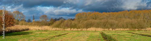 nature reserve, agriculture, background, beautiful, church, countryside, cruciform, dark clouds, gothic, green, holland, meadow, nature, holland, panorama, park, recreation, rural, scenery, scenic, season, stormy sky, tower, traditional, weather, winter