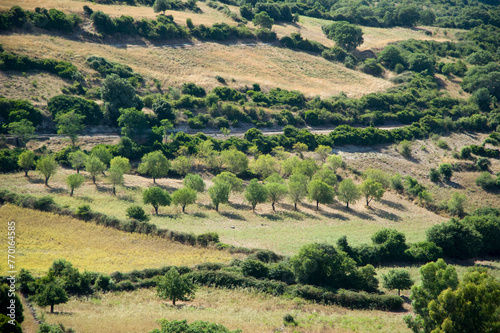 landscape of region with olive trees, Sardinia, Ogliastra, Italy