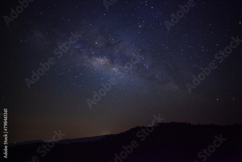 landscape silhouette tree on high moutain before sunrise with milky way galaxy