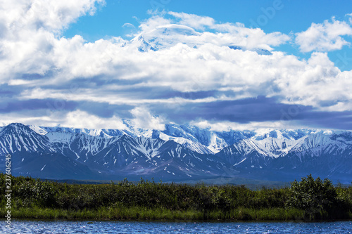 Landscape view of the mountain Denali in Denali National Park (Alaska).
