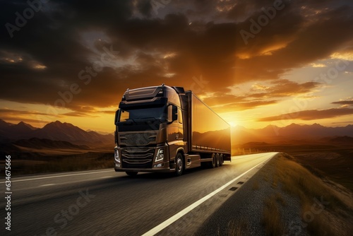 Landscape with delivery truck on the road, concept of logistics and transportation. Generative AI