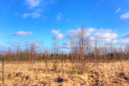 landscape, nature, spring, plant, sunlight, colours, tree, outdoors, beauty, forest, wood, sky, cloud, blue, grass, season, deciduous, tree branch, yellow, wilderness, birch, dry