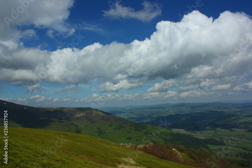 mountain, landscape, sky, nature, mountain, cloud, blue, green, forest, summer, panorama, view, grass, vale, travel, hill, beautiful, cloud, tree, tree, high, tour tourism, rock, peak, outdoors