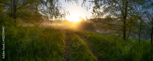 Landschaft an der Ems bei Lingen zum Sonnenaufgang im Frühling als Panorama