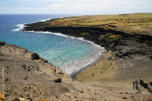 bay, beach, cliff, coast, coastline, colours, crumbling, crystal, erosion, famous, geology, gorgeous, green, hawaii, hike, landscape, landslide, nature, ocean, olivine, pacific, paradise, polynesia, pristine, remote, sand, sea, seascape, silicate, slip, south, sunny, tour tourism, travel, tropical