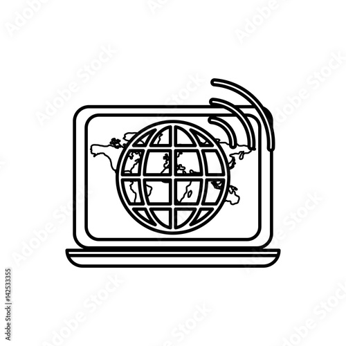 laptop, cyberspace, global, sphere, wi-fi, icon, black, white, isolated, screen, vector, illustration, technology, computer, office, communication, notebook, datum, background, information, work, keyboard, table, network, mobility, service, communicate, corporate, access, device, electronic mail