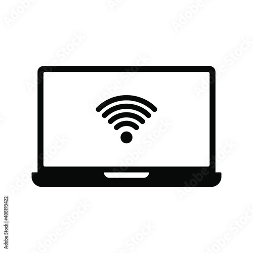 Laptop with wifi icon isolated. Notebook screen template. Vector illustration