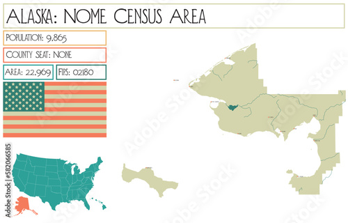 Large and detailed map of Nome Census Area in Alaska, USA.