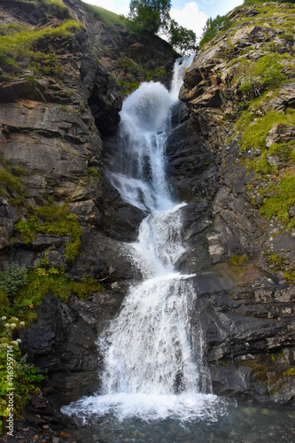 mountain, rock, nature, waterfall, landscape, river, sky, water, travel, green, forest, russia, stone, caucasia, summer, blue, stream, beautiful, tour tourism, cascade, scenic, tree, view, flowing, adventure, fall, hiking, vale, commonwealth, north, creek, peak, scenery, day, environment, snow, glacier, high, mount, canyon, cloud, grass, panorama, alanya, background, hill, mountain river, sunny