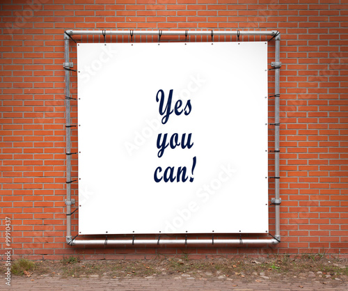 Large banner with inspirational quote on a brick wall