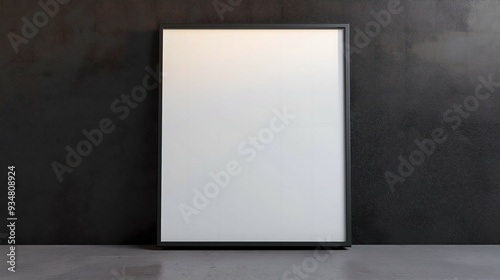 Large Blank Frame Leaning Against Wall with Ample Negative Space, Neutral Background for Poster or Banner Display