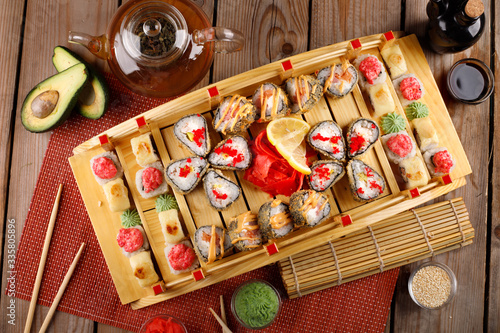sushi, set, salmon, food, meal, rice, seafood, tuna, plate, sashimi, white, caviar, eel, epicure, raw, sesame, vegetable, large, table, asian cuisine, asian culture, avocado, cucumber, dinner, exoticism, food and drink, freshness, fruits and vegetables, green, healthy eating, japanese culture, lettuce, lunch, prepared fish, refreshment, rolled up, sauce, seaweed, smoked, stick, traditional culture, variation, wood
