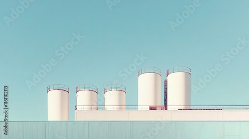 Large Factory Silos Under Clear Sky with Industrial Chimneys